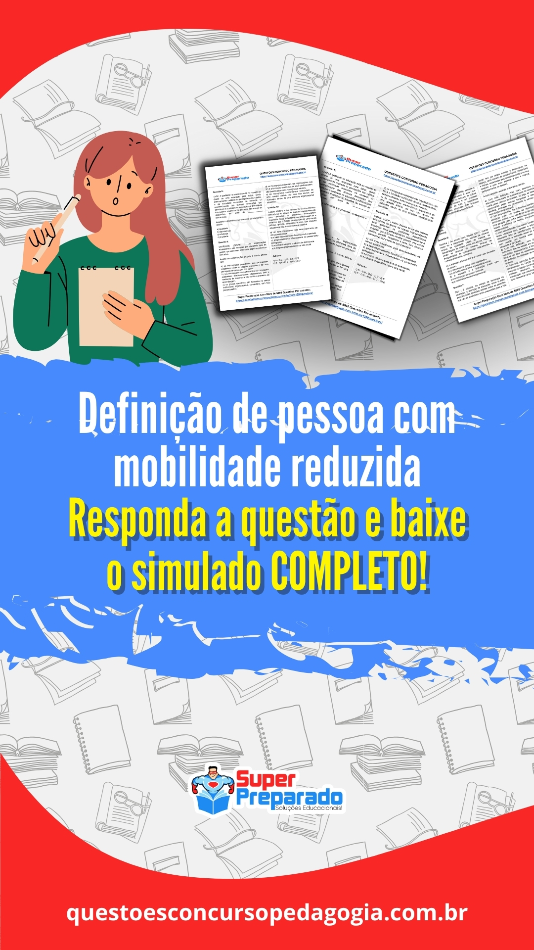 Definição de pessoa com mobilidade reduzida é tema recorrente em provas de concursos da área da educação. É fundamental que professores, pedagogos e demais profissionais da área tenham conhecimento sobre essa temática para garantir uma inclusão escolar mais efetiva. Estudar por meio de questões é uma ótima forma de se preparar!