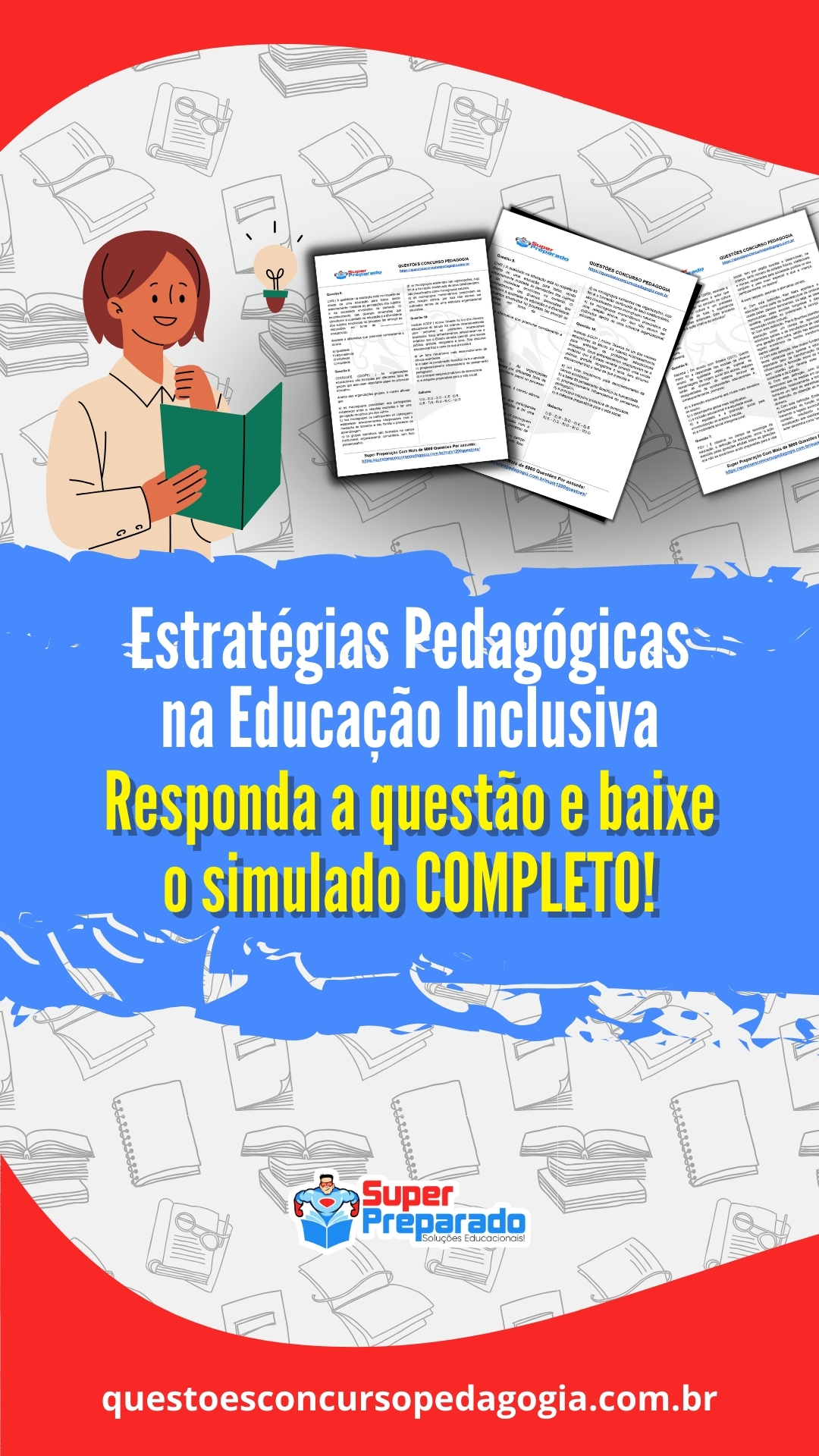 O PDF completo com a questão sobre Estratégias Pedagógicas na Educação Inclusiva pode ser baixado através do link abaixo. Além disso, em nosso blog, você encontrará outros materiais gratuitos para auxiliar nos seus estudos para concursos e seleções. Aproveite!
