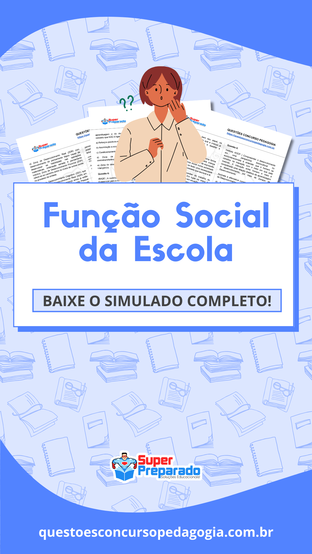 O PDF com a questão sobre função social da escola pode ser baixado através do link abaixo. Além disso, em nosso blog você encontra outros materiais gratuitos para auxiliar nos seus estudos. Aproveite!