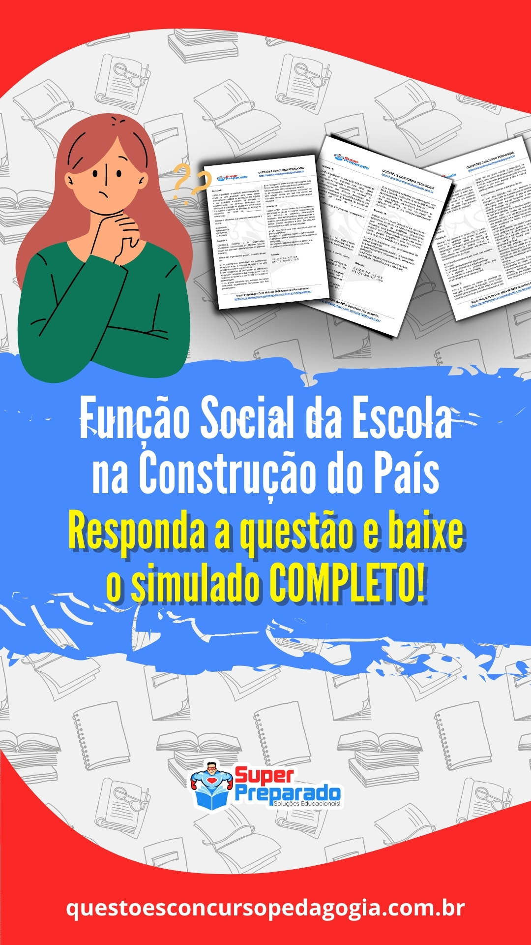 Acesse o link abaixo para baixar o PDF completo com a questão sobre Função social da escola, além de outros materiais gratuitos disponíveis em nosso blog.