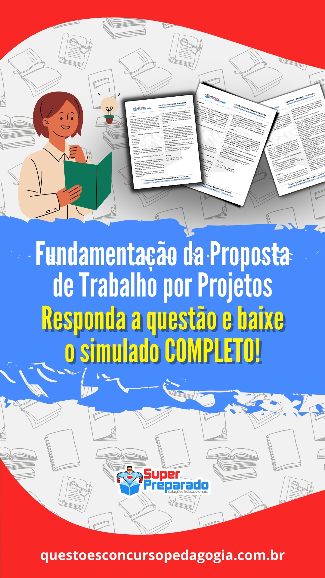 O PDF completo com a questão abordando a proposta de trabalho por projetos pode ser baixado através do link abaixo. Aproveite também para conferir outros materiais gratuitos disponíveis em nosso blog.