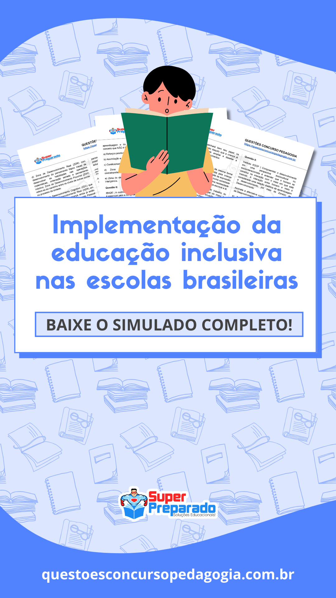 O PDF completo com a questão sobre Implementação da educação inclusiva nas escolas brasileiras e outros materiais gratuitos podem ser baixados através do link abaixo, disponível em nosso blog.