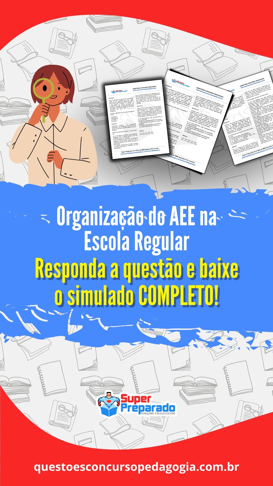 Tenha acesso a um material exclusivo com mais de 5000 questões divididas por assunto na área da Educação. Em formato de PDF, é uma excelente ferramenta para auxiliar nos estudos. Baixe agora mesmo e comece a sua preparação!