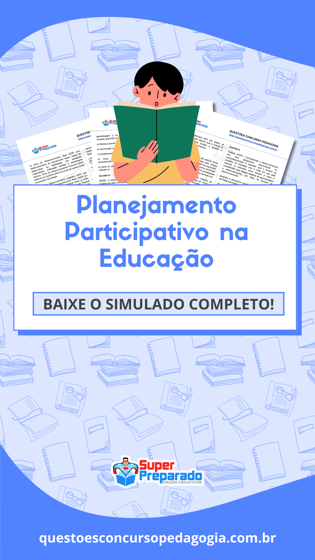 Nosso material em PDF conta com mais de 5000 questões divididas por assunto, incluindo questões sobre Planejamento Participativo na Educação. O material estará disponível para download ainda hoje, não perca essa oportunidade de iniciar seus estudos.