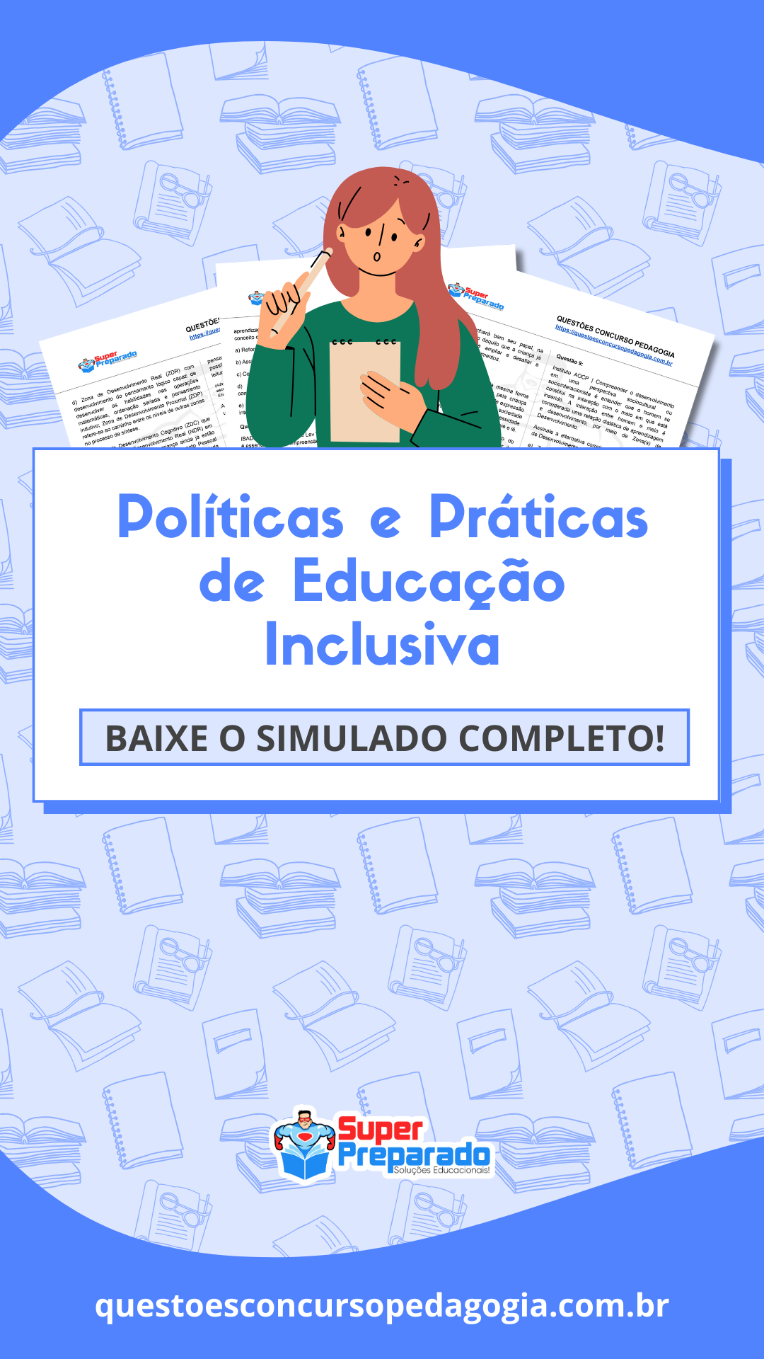 Baixe nosso material com mais de 5000 questões divididas por assunto em PDF ainda hoje e inicie seus estudos para concursos na área da Educação.
