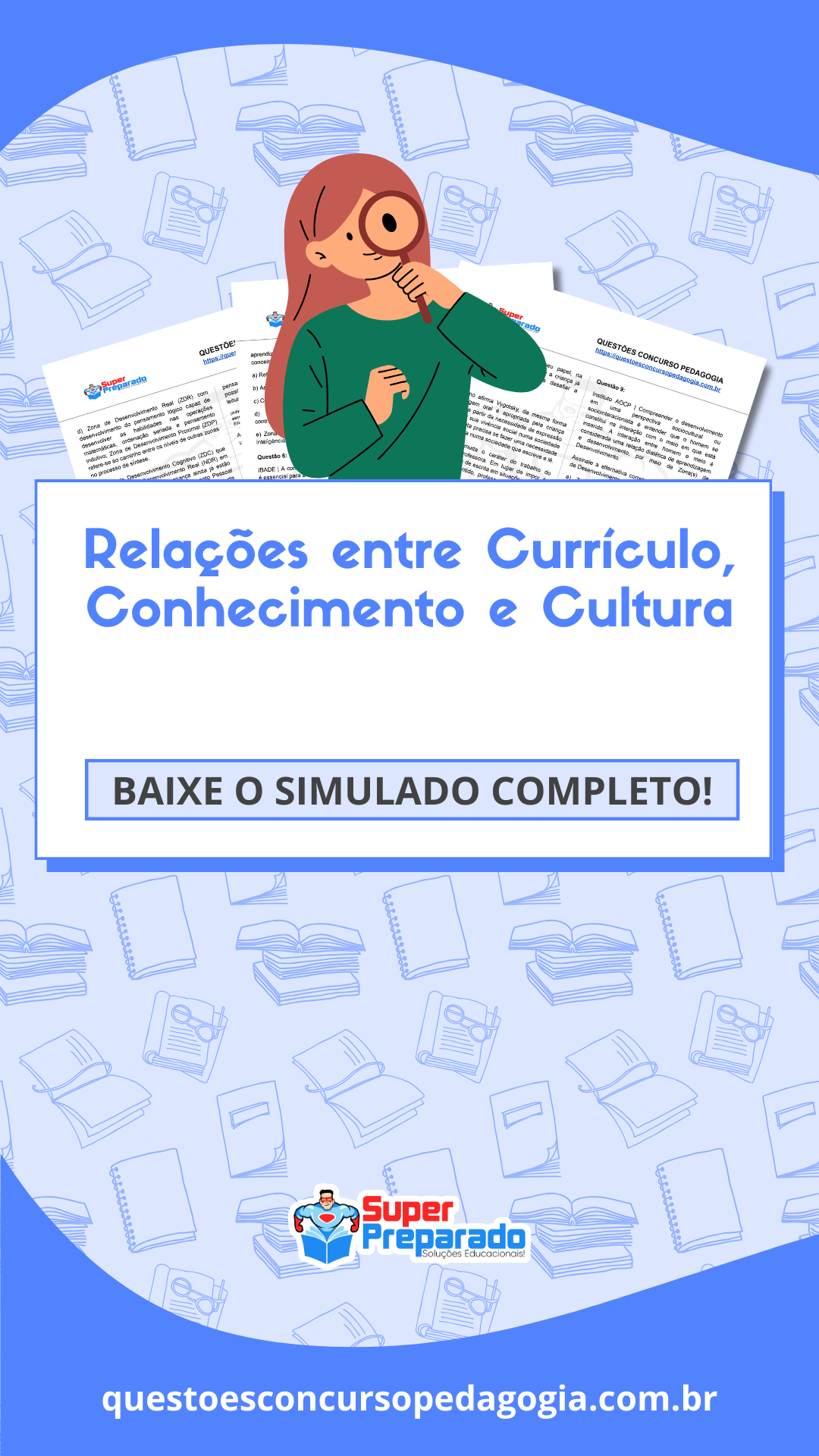 O PDF completo com a questão sobre Relações entre Currículo, Conhecimento e Cultura e outros materiais gratuitos estão disponíveis para download através do link abaixo. Aproveite!