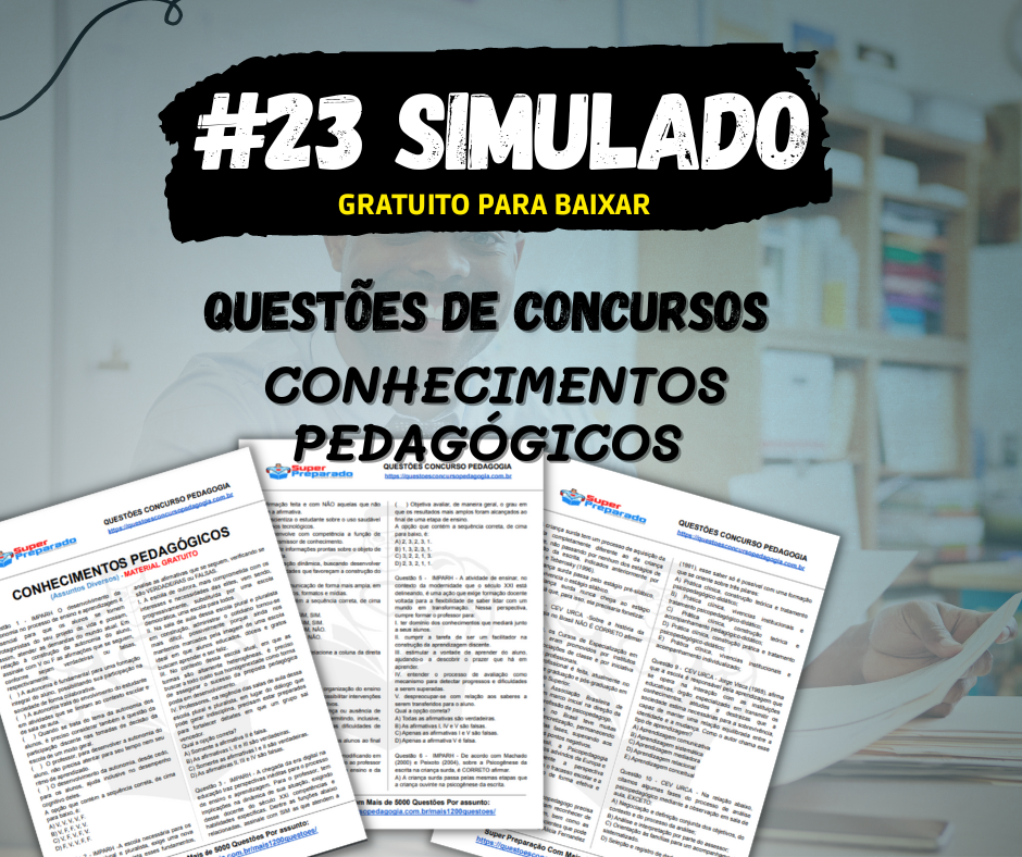 Simulado para concursos e seleções com questões de conhecimentos pedagógicos. Acesse o link abaixo e baixe para estudar.
