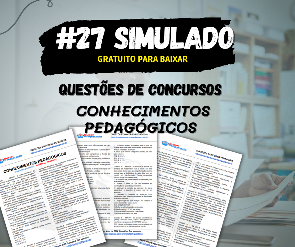 Simulado para concursos e seleções com questões de conhecimentos pedagógicos. Acesse o link abaixo e baixe para estudar.