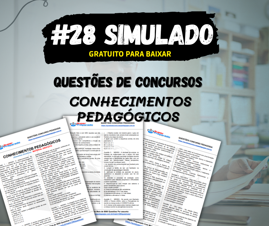 Simulado para concursos e seleções com questões de conhecimentos pedagógicos. Acesse o link abaixo e baixe para estudar.