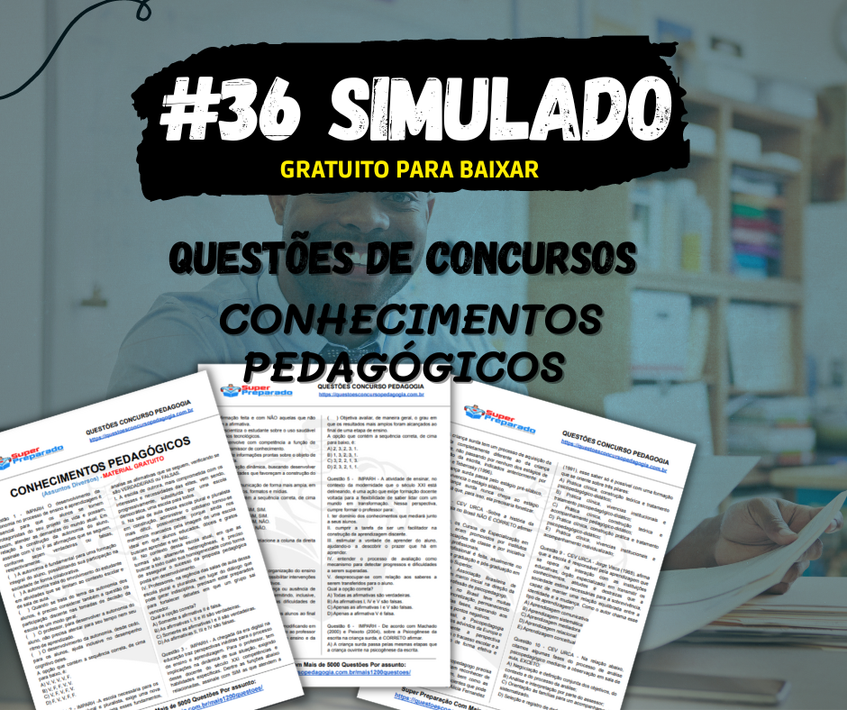 Simulado para concursos e seleções com questões de conhecimentos pedagógicos. Acesse o link abaixo e baixe para estudar.