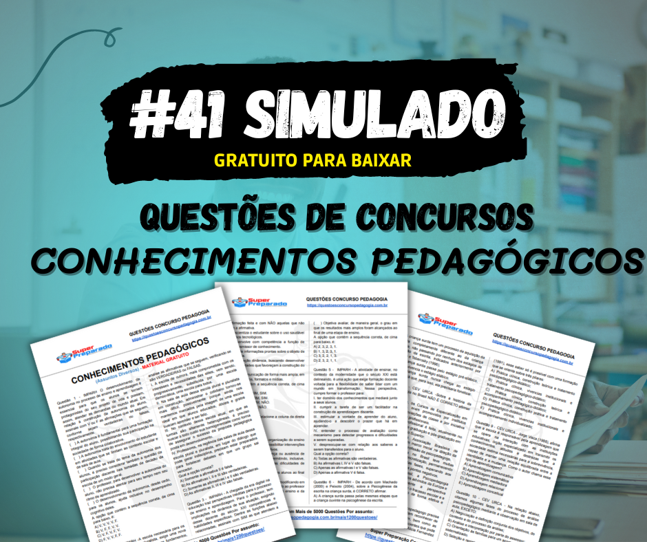 Simulado para concursos e seleções com questões de conhecimentos pedagógicos. Acesse o link abaixo e baixe para estudar.