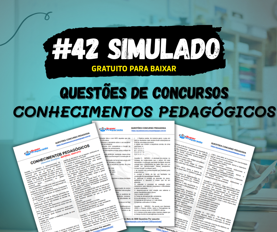 Simulado para concursos e seleções com questões de conhecimentos pedagógicos. Acesse o link abaixo e baixe para estudar.