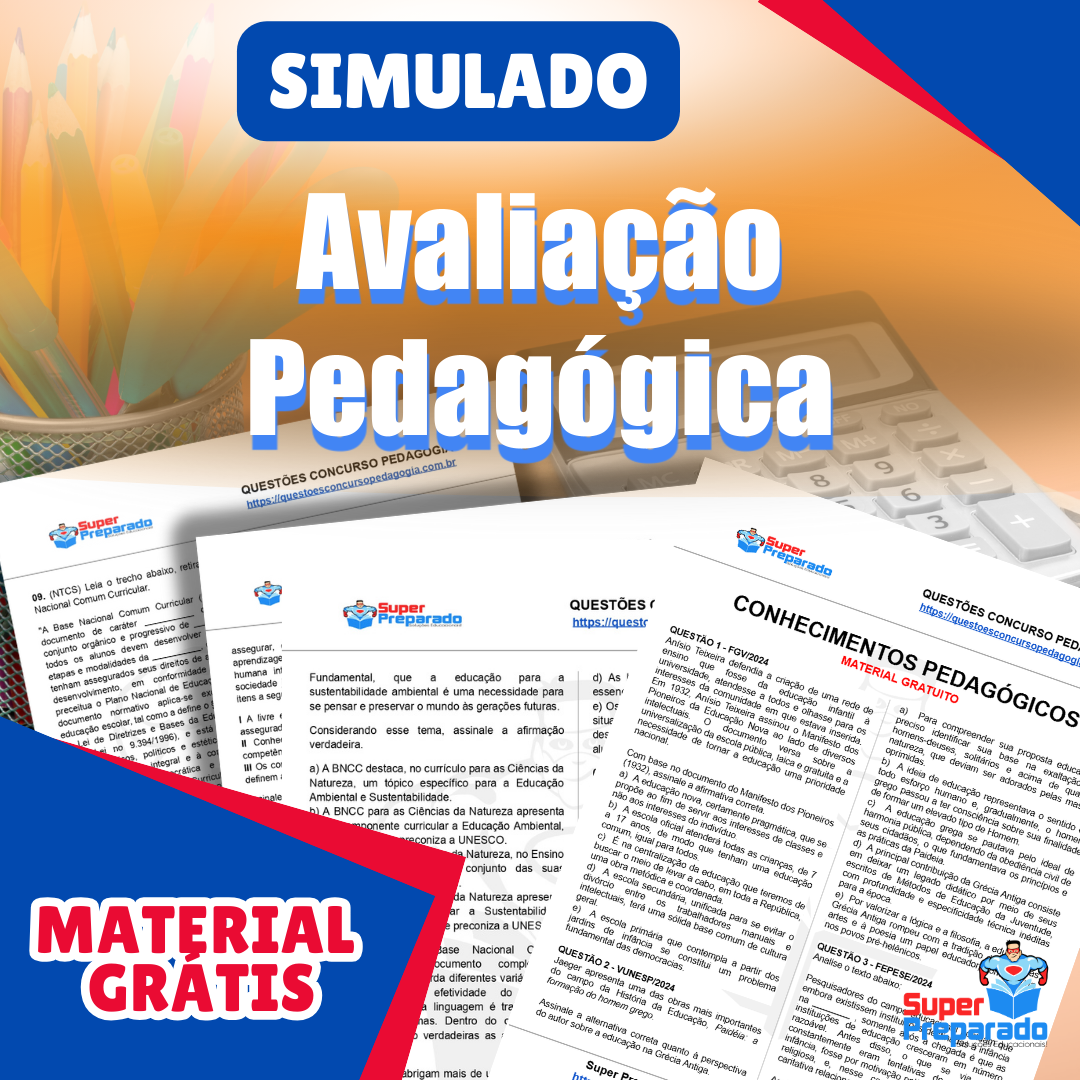 Baixe GRÁTIS o pdf do Simulado Avaliação Pedagógica e prepare-se para concursos de professores, testando seus conhecimentos pedagógicos.
