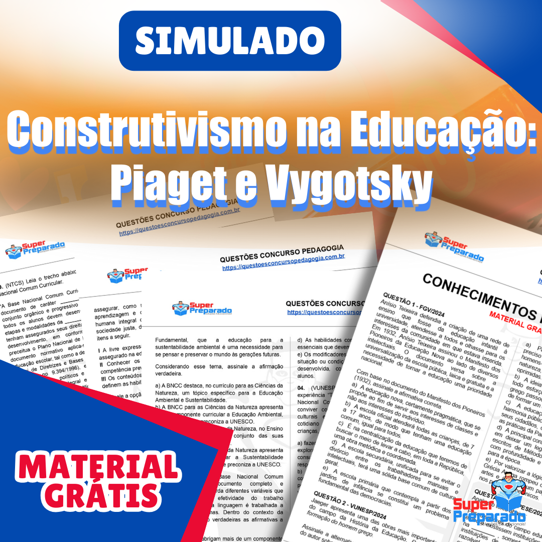 Baixe GRÁTIS o pdf do simulado Construtivismo na Educação: Piaget e Vygotsky e prepare-se para concursos de professor. Adquira conhecimentos pedagógicos essenciais.