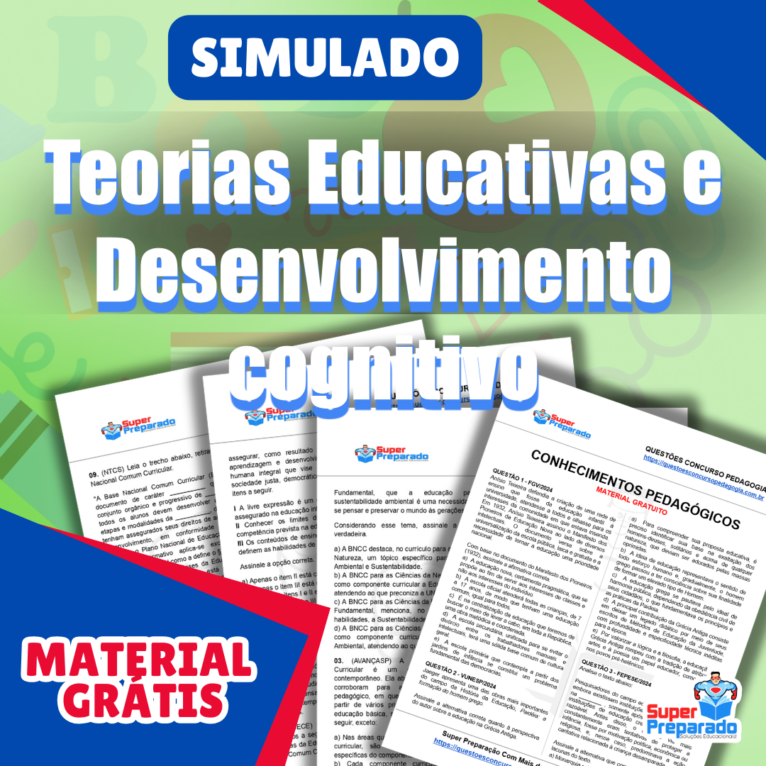 Baixe GRÁTIS o pdf do Simulado Teorias Educativas e Desenvolvimento cognitivo e prepare-se para concursos de professor, aprimore seus conhecimentos pedagógicos.