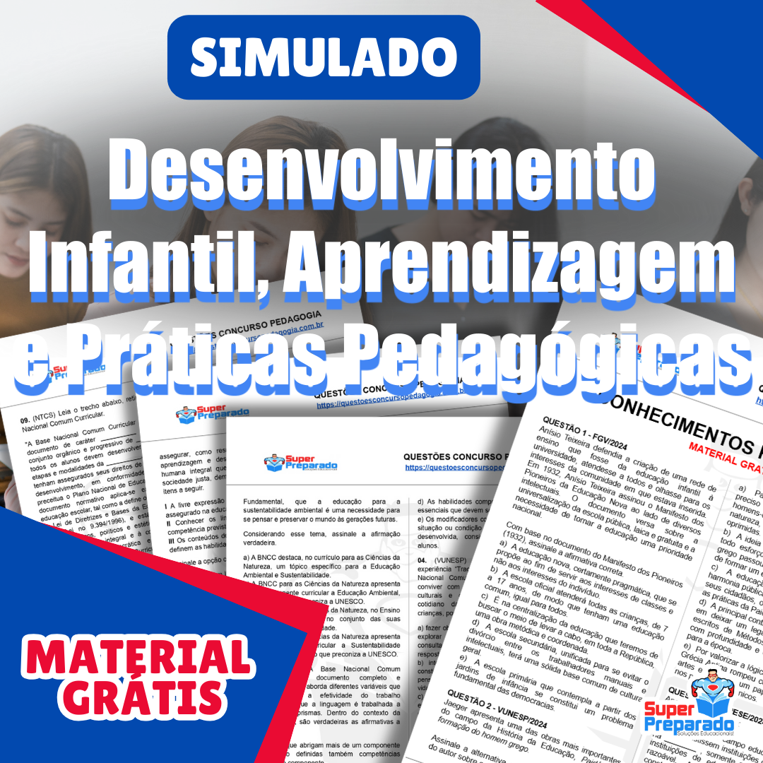 Baixe grátis o pdf Simulado: Desenvolvimento Infantil, Aprendizagem e Práticas Pedagógicas e prepare-se para concursos de professores com conhecimentos pedagógicos.