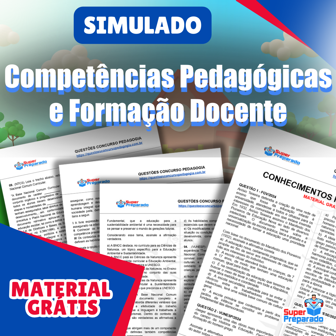 Baixe GRÁTIS o pdf Simulado: Competências Pedagógicas e Formação Docente. Prepare-se para concursos de professor com conhecimentos pedagógicos.