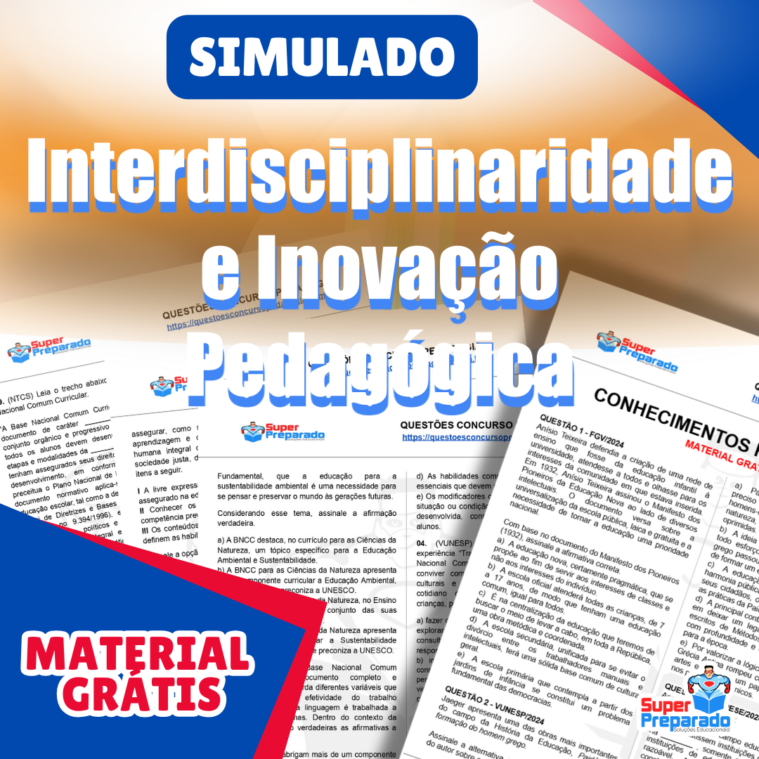 Baixe GRÁTIS o pdf “Simulado Interdisciplinaridade e Inovação Pedagógica” e prepare-se para concursos de professores. Adquira novos conhecimentos pedagógicos!
