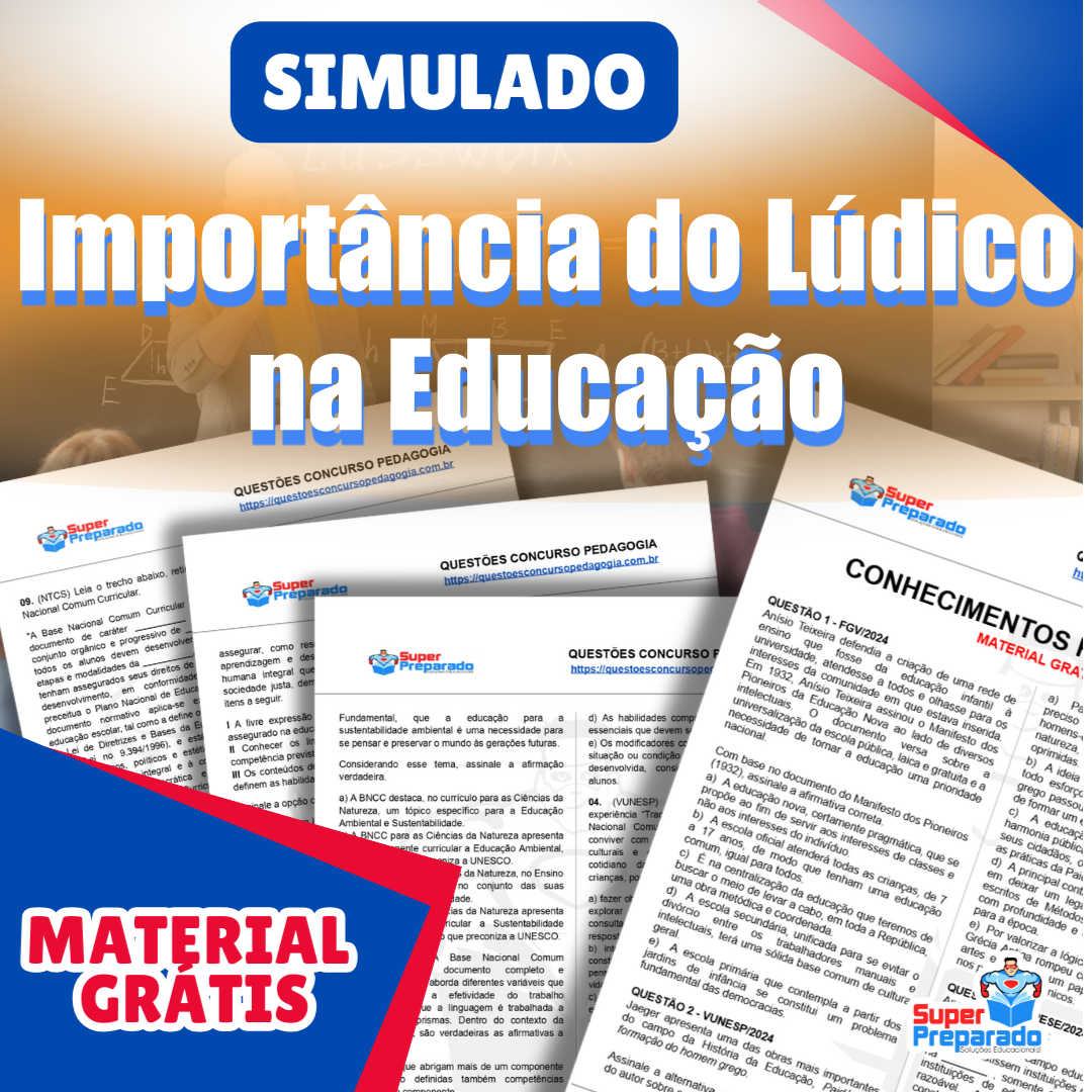 Baixe GRÁTIS o pdf do simulado “Importância do Lúdico na Educação” e prepare-se para concursos de professores com conhecimentos pedagógicos.