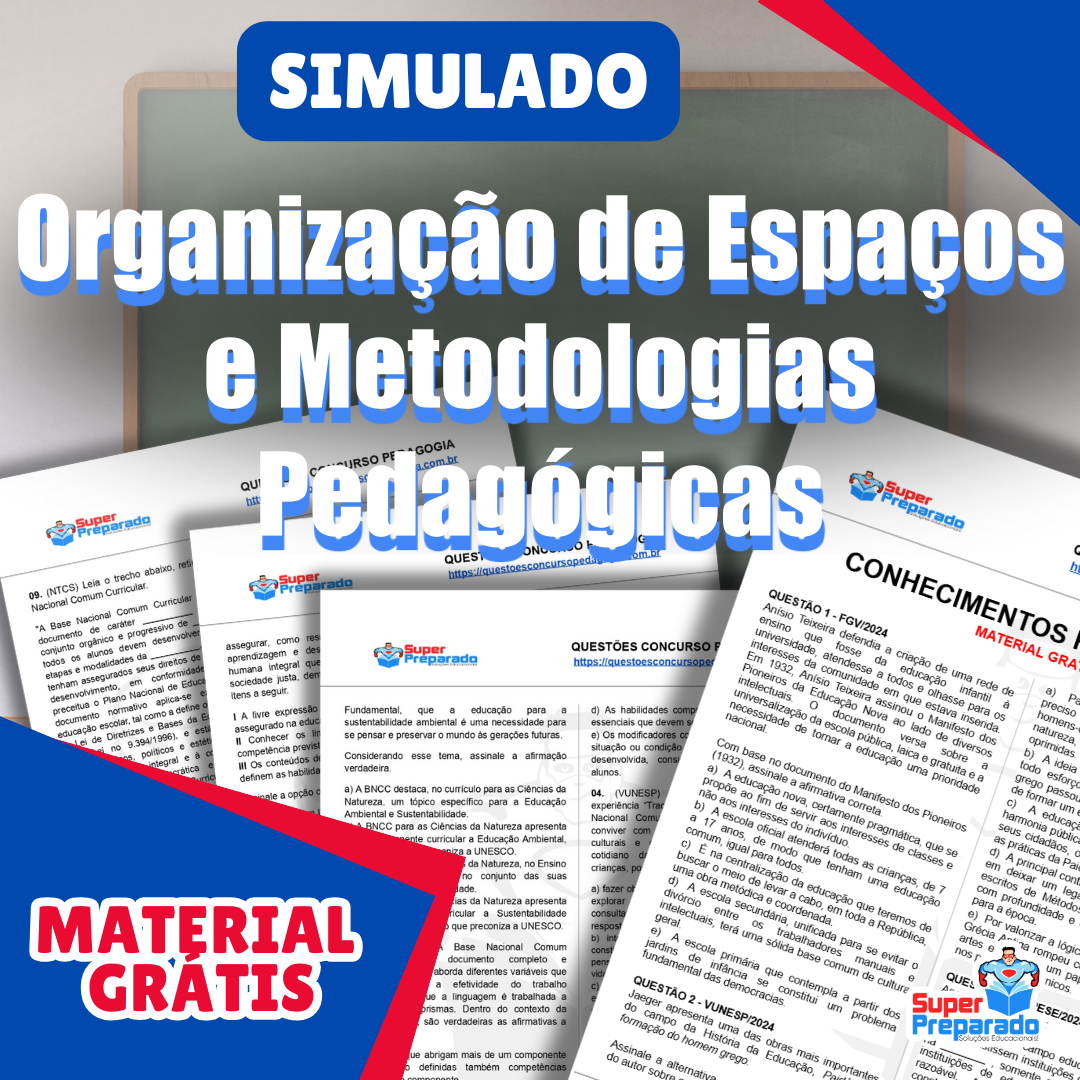 Baixe GRÁTIS o pdf Simulado: Organização de Espaços e Metodologias Pedagógicas e prepare-se para concursos de professores. Aprofunde seus conhecimentos pedagógicos!