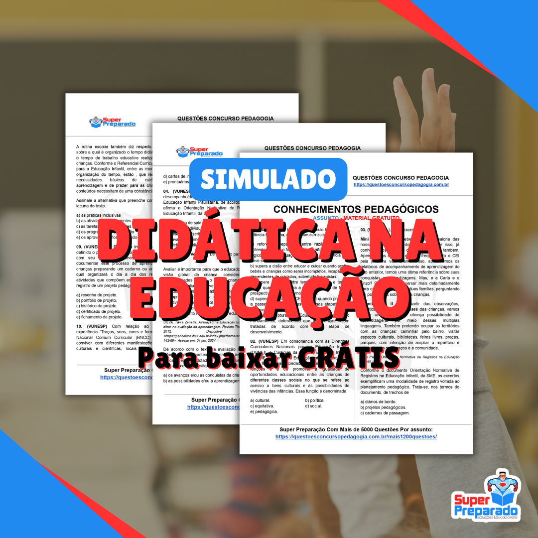 Olá, educadores e estudantes! Gostaríamos de informar que o simulado de Didática na Educação já está disponível para download em formato PDF. Para ter acesso ao material, basta clicar no link abaixo e realizar o download. Este simulado é uma ótima ferramenta de estudo para quem está se preparando para provas e concursos na área da educação. Aproveite e bons estudos!