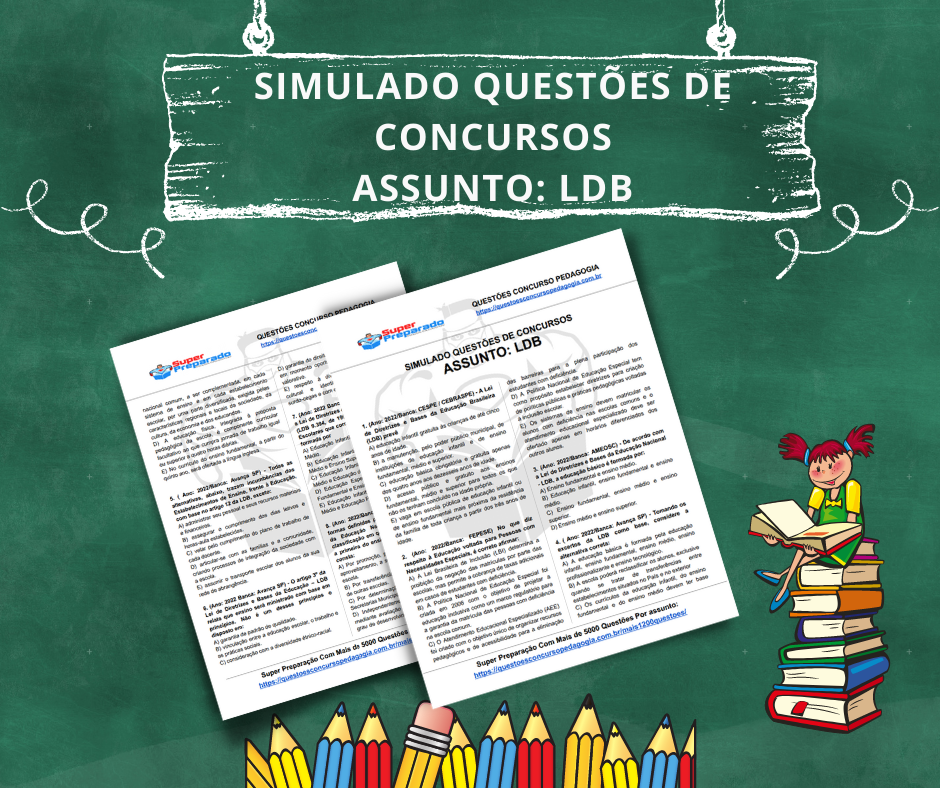 Simulado e questões de concurso assunto LDB . Para profissionais da educação que irão fazer concurso e seleção, este material será de bastante auxilio para seus estudo. Baixe já em PDF e aprofunde mais seus conhecimentos.