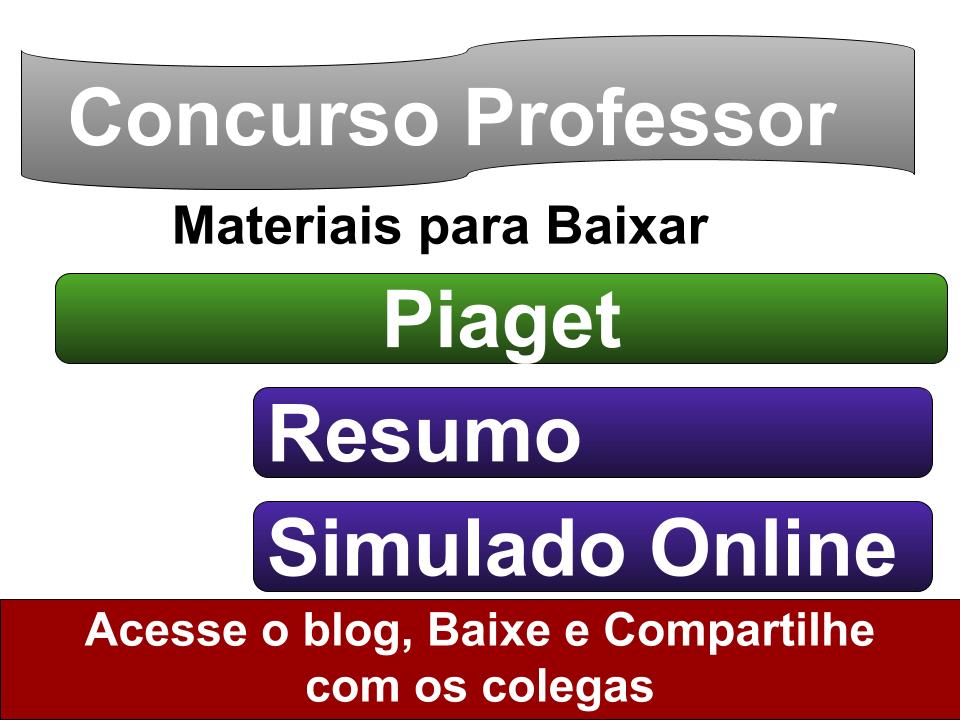 Um dos principais teóricos que é cobrado em quase todos os concursos para professor: PIAGET. Esse é um simulado online grátis exclusivo sobre a teoria de Piaget. São 10 questões de conhecimentos pedagógicos para testar sua aprendizagem. No simulado poderá ver sua pontuação ao finalizar-lo e saber quais questões errou e acertou.