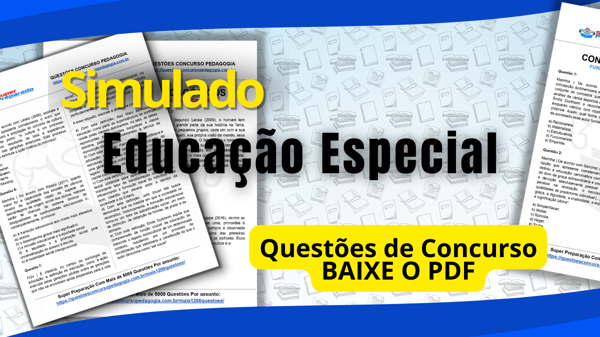 Preparar-se para concursos e seleções na área da educação exige domínio de temas essenciais, especialmente aqueles relacionados à Educação Especial. Este simulado apresenta uma série de questões elaboradas com base em conceitos fundamentais para profissionais da educação que buscam promover um ambiente escolar inclusivo. Baixe o PDF, teste seus conhecimentos e esteja pronto para enfrentar desafios relacionados à diversidade e igualdade no contexto educacional.
