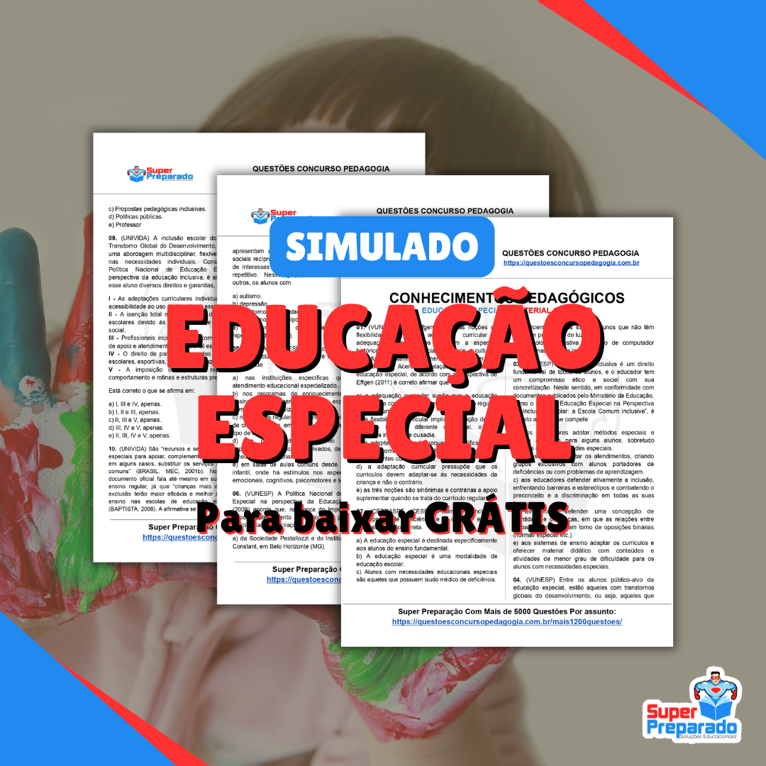 Agora você pode acessar e baixar o simulado de Educação Especial em PDF através do link disponibilizado abaixo. Este material foi desenvolvido com o intuito de auxiliar na preparação para avaliações e concursos na área da Educação Especial, abordando diversos temas relevantes para esse campo. Não perca essa oportunidade de se preparar de forma eficiente e realizar uma ótima prova.