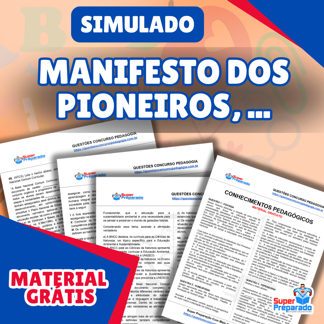 Baixe o simulado sobre Manifesto dos Pioneiros e outros assuntos em PDF clicando no link abaixo. Aproveite para estudar e se preparar da melhor forma possível. Boa sorte nos estudos!
