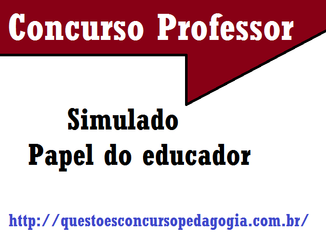 Mais um material para concurso professor, este é um simulado que servirá para materiais teóricos. Nas próximas postagens terão outros temas. Siga sempre a DICA: Após o estudo resolver o maior número possível DE QUESTÕES, fazer simulados, para ficar preparado para o concurso. Caso deseje conhecer nosso material de SIMULADOS, PROVAS E OUTROS CLIQUE AQUI