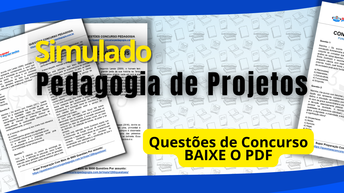 Caros professores e profissionais da educação, este post é dedicado a vocês que estão se preparando para concursos e seleções na área. Sabemos que os conhecimentos pedagógicos são essenciais nesse processo, e para ajudar na sua preparação, preparamos um simulado com foco na Pedagogia de Projetos, uma abordagem educacional que tem ganhado destaque. Baixe o PDF, resolva as questões e aprimore seus conhecimentos pedagógicos.
