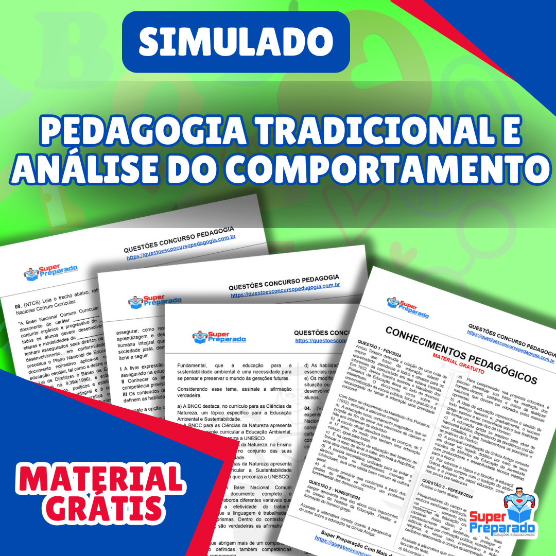 Baixe o simulado sobre Pedagogia Tradicional e Análise do Comportamento e outros assuntos em PDF clicando no link abaixo. Aproveite para estudar e se preparar da melhor forma possível. Boa sorte nos estudos!