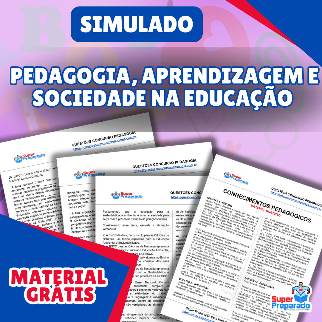 Faça o download do simulado em PDF sobre Pedagogia, Aprendizagem, Sociedade na Educação e diversos outros temas clicando no link abaixo. Prepare-se com qualidade e alcance seus objetivos. Bons estudos!