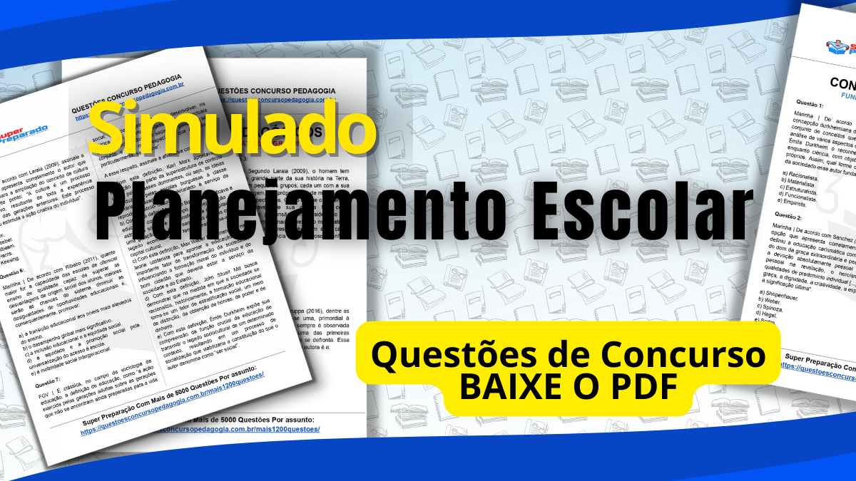 Bem-vindo(a) ao nosso Simulado Para Concursos sobre Planejamento Escolar. Neste simulado, exploraremos questões que abordam temas essenciais na área pedagógica, proporcionando uma visão aprofundada e instigante. Preparado e otimizado para quem busca compreender os fundamentos pedagógicos, este simulado é uma ferramenta valiosa para testar seus conhecimentos.