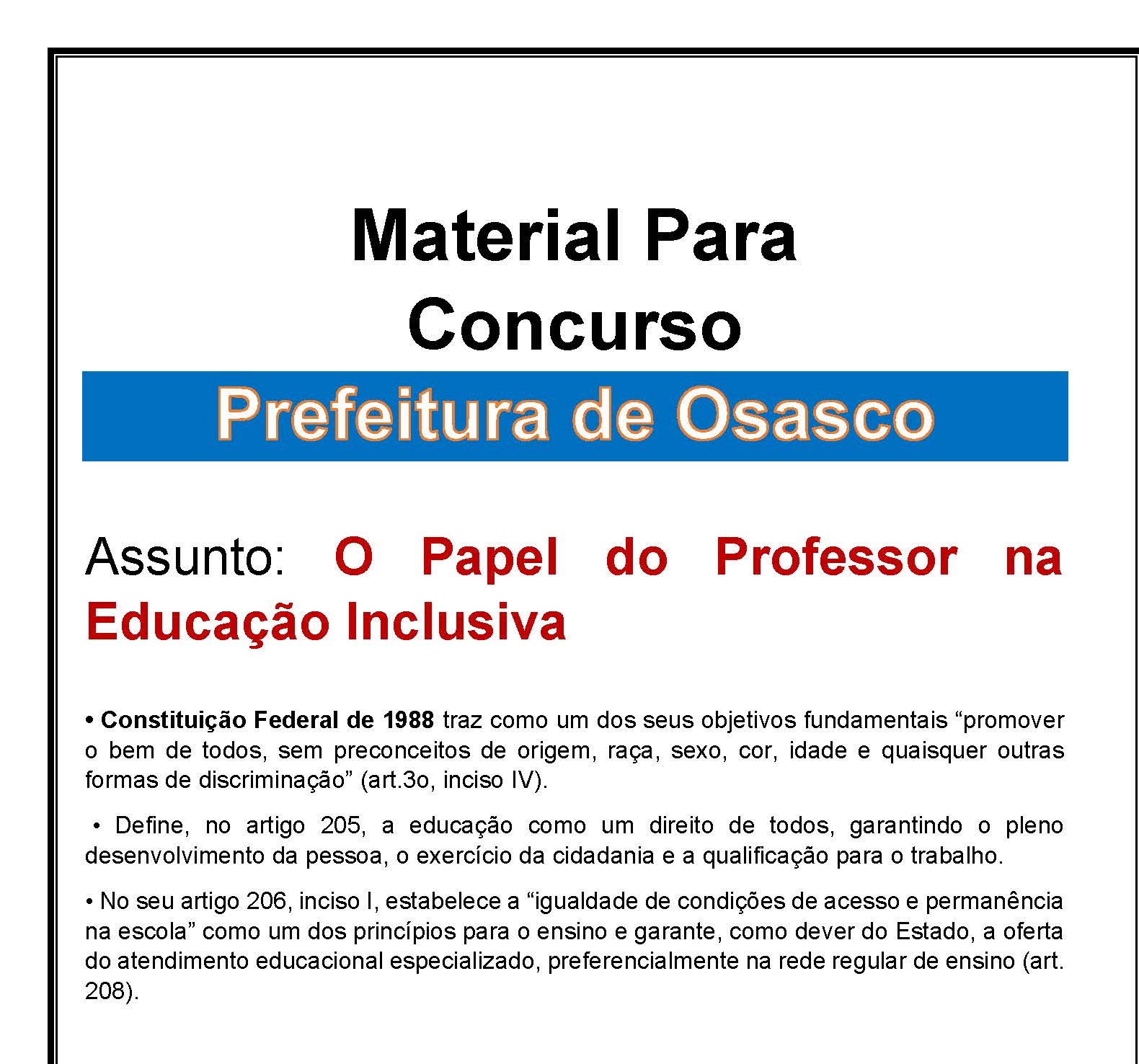 Para os colegas que irão fazer o Concurso de Osasco-SP neste de 2017. Estarei postando alguns materiais para que facilite no estudo. Serão questões, resumos, simulados dos assuntos exigidos no edital Concurso de Osasco. As vagas são: