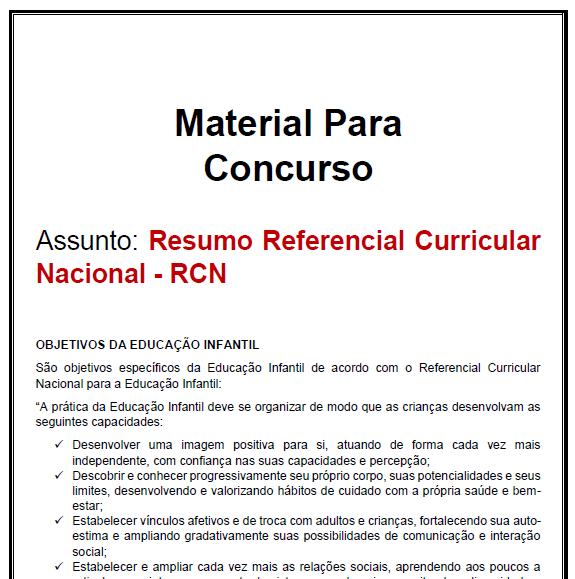 Referencial Curricular Nacional (RCN): Sempre cai em Concurso Professor de Educação Infantil