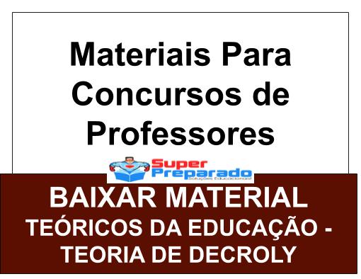 Para você que está a procura de resumo em PDF sobre a Teoria de Drecoly com conceitos,concepções e também um pouco sobre Decroly. Então este material é perfeito para você realizar uma boa prova de concurso professor.