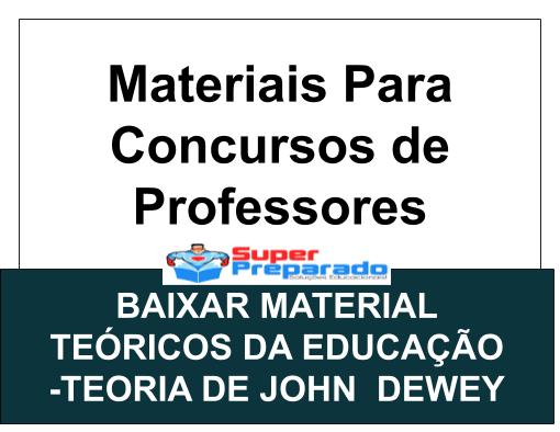Post com material de estudo em PDF com o assunto Teóricos da Educação sobre a Teoria de John Dewey. O material inclui os conceitos de concursos para professores que ajudará você em uma boa realização de prova.