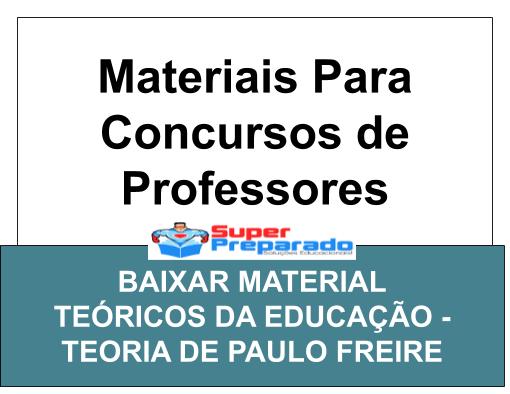 Material para estudo de concurso para professor sobre Teóricos da Educação. Este material contém os principais pontos da Teoria de Paulo Freire que podem cair no seu concurso.